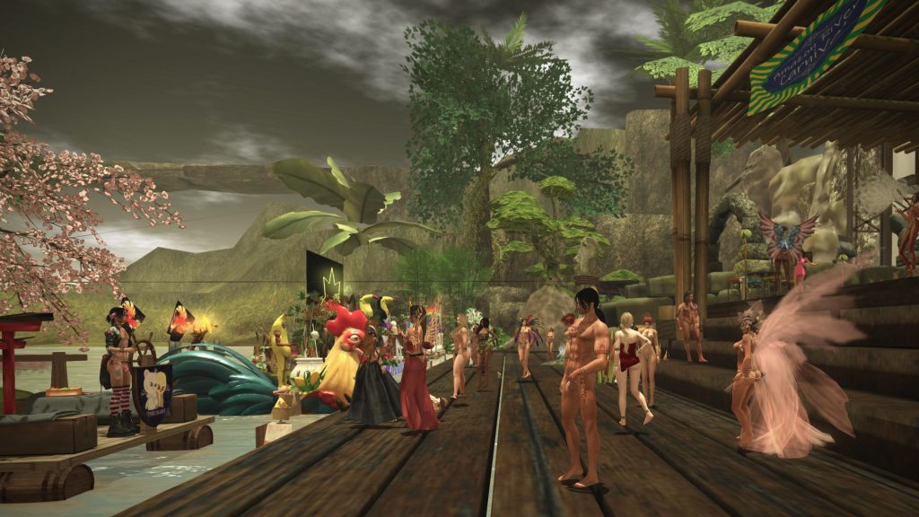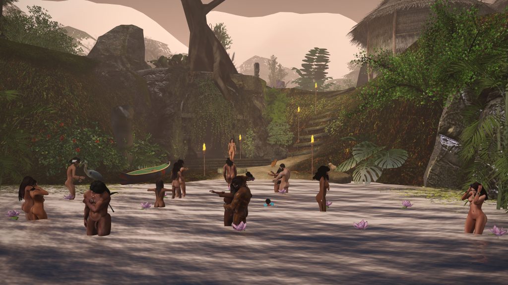 This week after the Día de los Muertos storytelling, we gathered for another Naked Wednesday. Kart had gotten himself very dirty for storytelling, so we decided it was time for a proper river bath. Then Whisper, her DoD kitty and Zazulu held a Día de los Muertos quiz that Mitch won with ease. When the quiz ended, Shui and Sari began to play the drums, and soon the camp was alive with rhythm as everyone danced themselves dry.