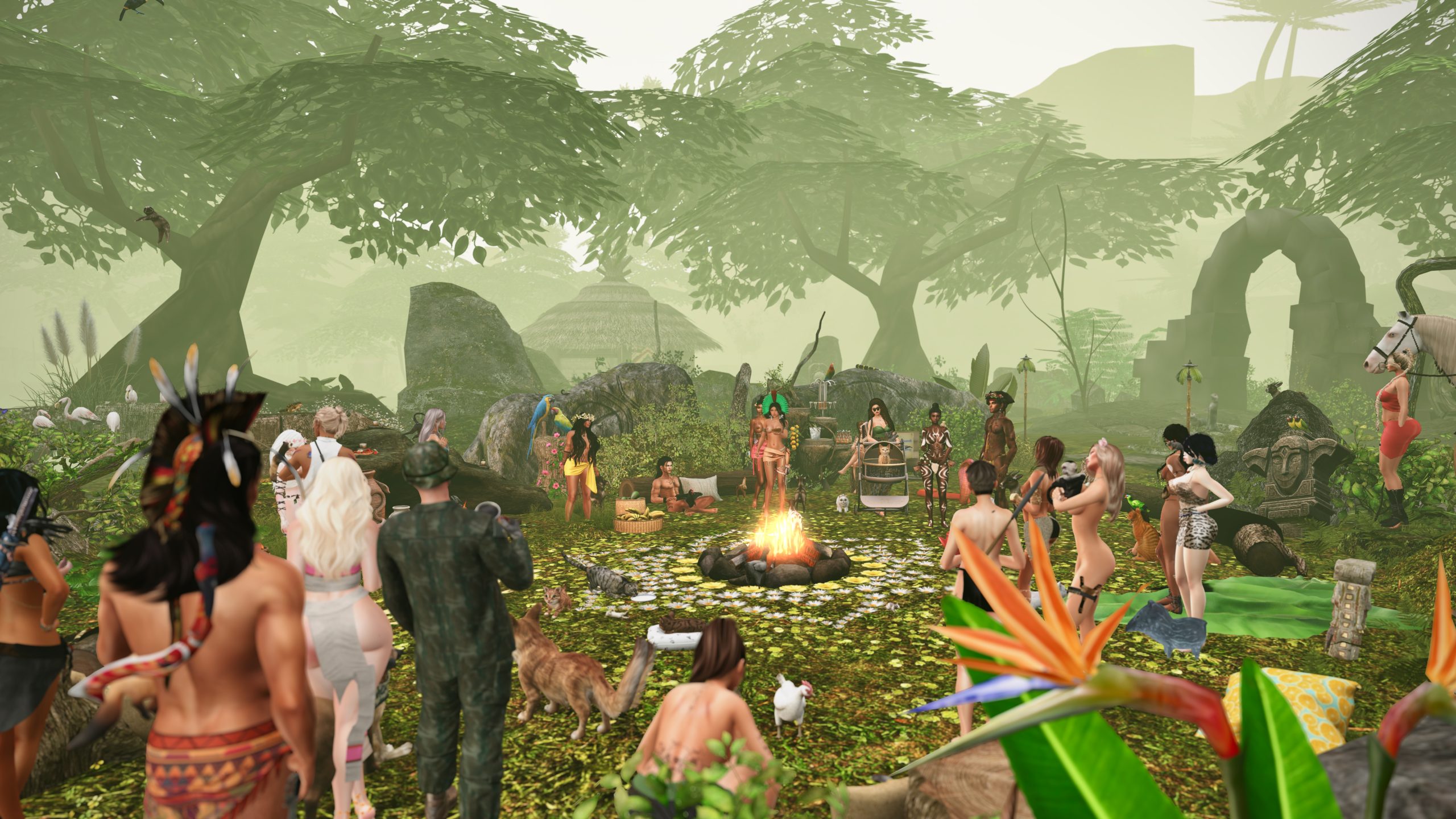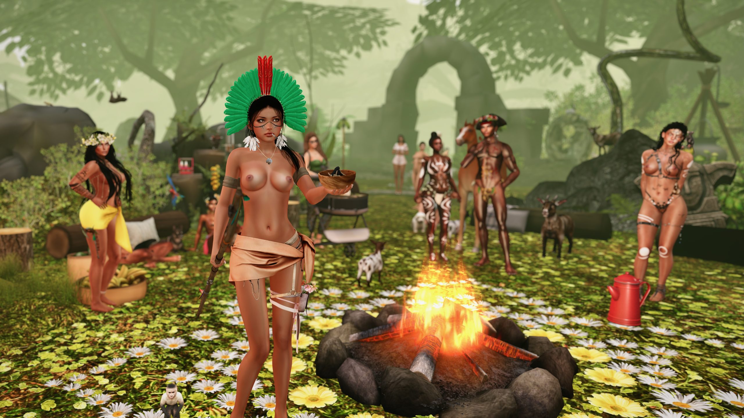 Afterwards, Summer, who had decorated the camp beautifully for the occasion, invited Catten to tell the story of Curupira, the guardian of the jungle. As the tale ended, Shui played the drums and soon everyone was dancing and drinking.